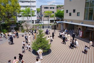 新入生が保護者の方と一緒に登校してきました。教職員一同でお迎えします。