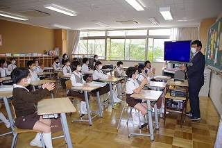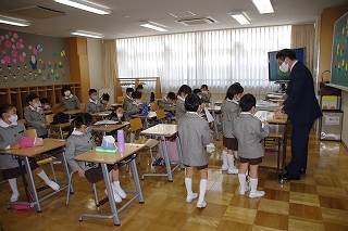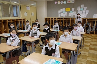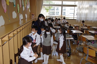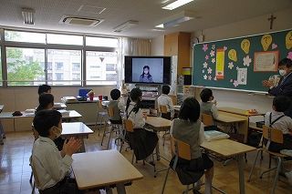 新しい友達、新しい先生の紹介を受け、それぞれの教室から歓迎の拍手を送りました。