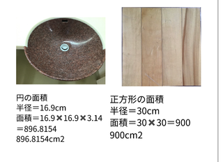 学校の中にある円をみつけ,その面積を求め,その面積に近い面積の四角形を探す活動を行いました。
