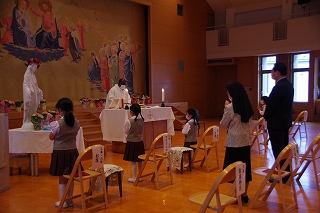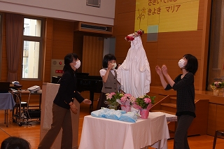 5月は聖母マリアの月です。マリア様をたたえるため、毎年この時期に「聖母月の集い・ミサ」を行っています。5月19日、低学年は聖母月の集いを、高学年は聖母月のミサを行いました。