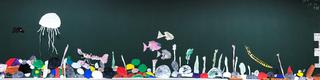 黒板の中のスイミーの世界に、スイミーを実際に動かしながら教科書を読みますと、