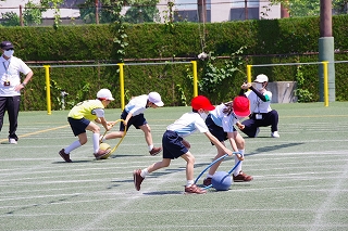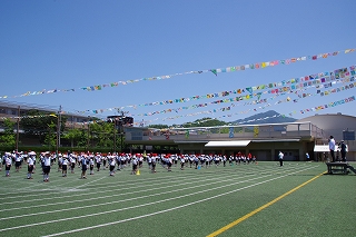 例年初夏に行っているスポーツフェスティバルを新型コロナウイルス感染予防の観点から、低学年・中学年・高学年の3回に分けて行いました。