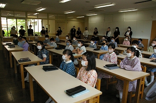 時間差の来校をお願いし、広い教室で細心の注意を払って実施しました。保護者の皆様、検温、マスク着用、手指消毒等ご協力くださり、ありがとうございました。