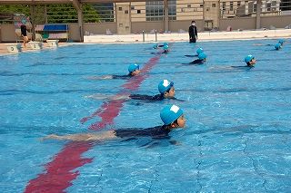 昨年度はコロナ禍で水泳学習を実施することができませんでした。今年度は新型コロナウイルス感染予防に細心の注意を払って水泳学習を行っています。