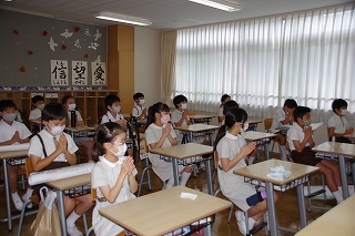 パラリンピックについて、またコロナウイルスがまん延している状況にもふれ、ともに夏休みをふり返りました。どんな時にも思いやりを持って人に接することが大切だというお話でした。