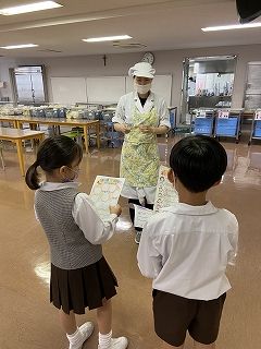 先日、『すまいるプロジェクト』第2弾として、1年生達が給食室にも来てくれました。