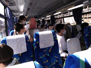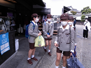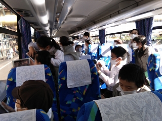 朝、京都駅に集合し、元気に出発しました。今年度は感染予防のため、移動はすべて貸切バスです。