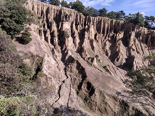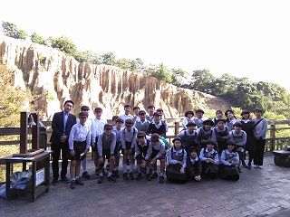 午後は阿波の土柱の見学に向かいました。約100万年前の地殻変動で隆起した崖が、長年かけて雨水による浸食により、このような珍しい地形になったそうで、世界三大奇勝のひとつとされるそうです。「アメリカのグランドキャニオンみたい!」と、子ども達が言ったとおり、間近で見上げるとまさに大自然の力強さと神秘を体感できる迫力ある景色でした。