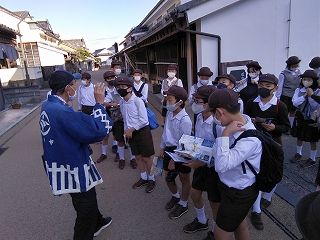 徳島県西部の脇町の散策では、ボランティアガイドさんに江戸時代の人々の様子や家屋のつくりについてお聞きしました。