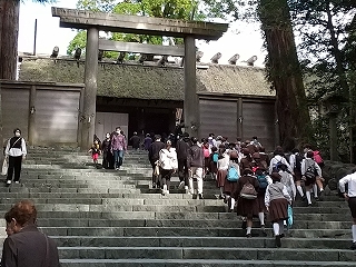 午前中は伊勢を訪ねます。伊勢神宮内宮は日本人の総氏神とされる天照大御神をまつっていて、二千年もの歴史があり、「日本人の心のふるさと」と言われています。