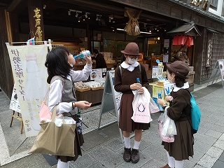 食後は、子ども達が楽しみにしていたおはらい町・おかげ横丁での班別行動です。家族やパートナーの喜ぶ顔を想像して、お土産を買いました。ご当地ラムネやアイスクリームなども味わって、友達と楽しいひとときをすごしました。
