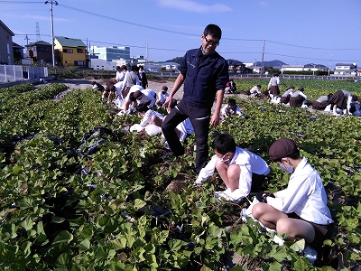 3日目の最後のプログラムは、JA里浦さんでのさつまいも掘りの体験です。「なると金時」と呼ばれる甘いさつまいもの中でも「里むすめ」というブランド品種がこの地の名産です。