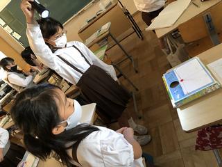 3年生の理科では太陽とかげの動きについて学習しています。紙に棒を立てて出来た影を、時間を変えて記録しました。時間がたつと影が動く様子を確認することができます。そこから