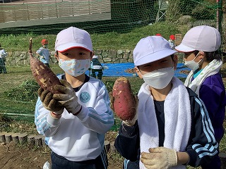 今週は,3学年が山の家学習を行いました。月曜日に3年生が「秋の自然を観察しよう」というテーマで,秋の生き物や,植物の観察を行いました。水曜日には6年生が,図工の授業で縄文土器をイメージして作製した土器を,野焼きで焼き上げました。昨日は2年生が,山の家の不思議なことやものを探す活動をし,大きく成長したサツマイモを収穫して帰ってきました。