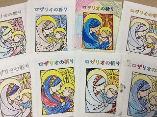 コロナウイルス感染症で苦しむ人々、コロナ禍で困っている人、災害にあって今なお困っている人々、自分のまわりの家族や友達――ロザリオを手に、思いを寄せて祈り、「祈りの花束」にしてささげました。