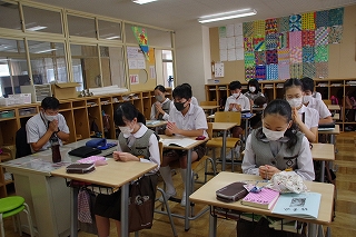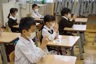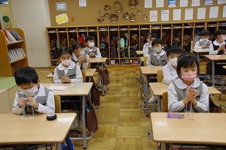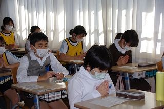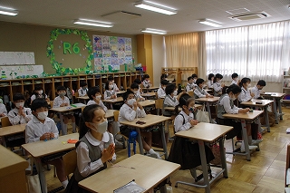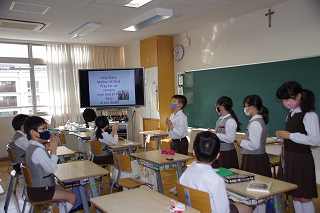 今年もコロナウイルス感染症予防の観点から聖堂に集うことはせず、朝のテレビ放送の時間にそれぞれの教室から祈りをささげました。