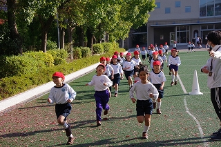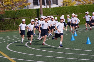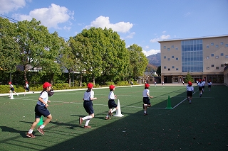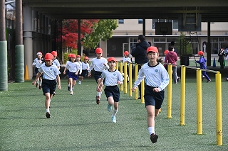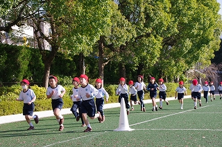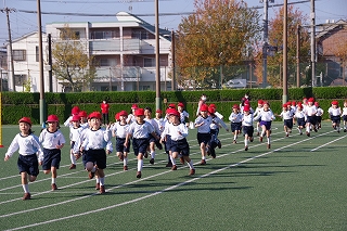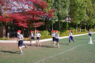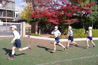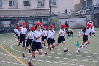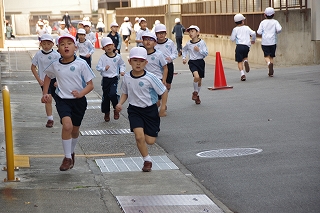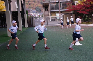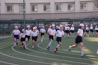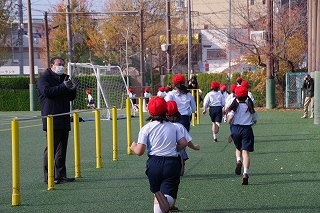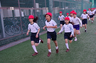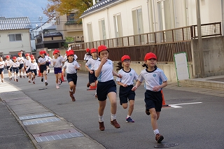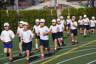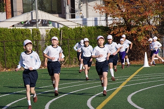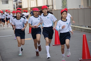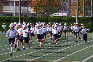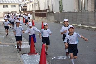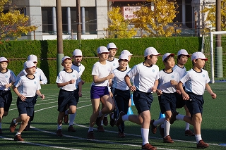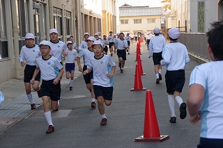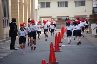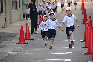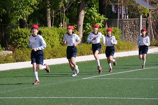 マラソン大会に代わり、昨年度から校内でランフェスティバルを行っています。1,2年生は約700m、3,4年生は約900m、5,6年生は約1200mのコースです。