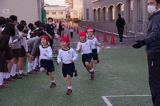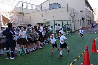 特に、走り終わった6年生が着替えた後パートナーの1年生の応援にかけつけ、心を込めて応援しているのは心あたたまる光景でした。