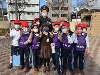 全員でお礼を言った後、個人的に感謝を伝えたい、質問したいと言う子どもたちが警備員さんの周りに集まりました。