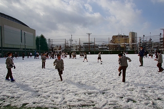 大阪生まれの私は,子どもの頃に雪遊びをした記憶がほとんどありません。本校に勤めて初めて,雪が積もるということ,雪で車が出せなくなることを経験しました。当時は今よりもよく雪が降りました。若かった担任時代には,子どもたちと雪遊びをして運動場を走り回り,雪玉を投げる標的にされたことなどを思い出します。雪が降ると,大人は困ることが多いですが,子どもたちは大喜びで雪合戦や雪だるまなどを作り,雪の寒さも関係なく元気に遊びます。