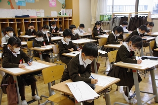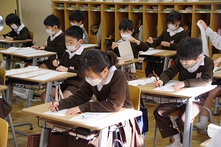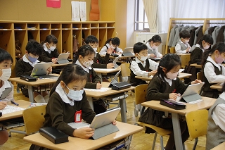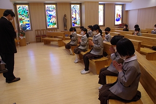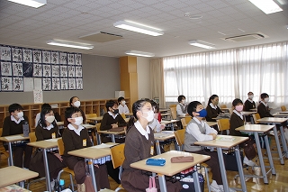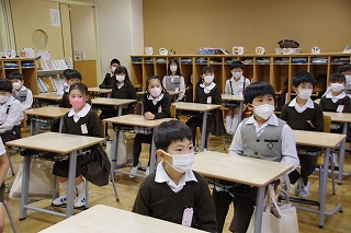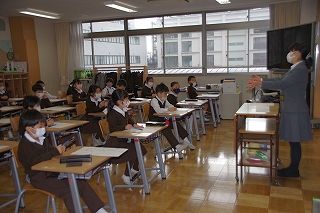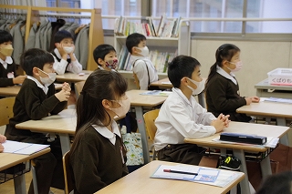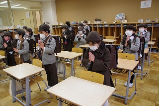 テレビ放送で共に朝の祈りをささげ、校長先生の話を聞きました。後期後半を充実してすごせるよう決意を新たにしました。