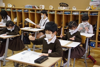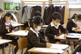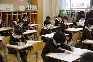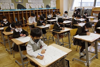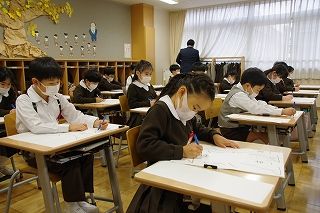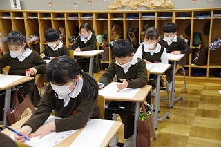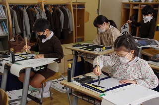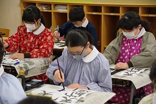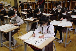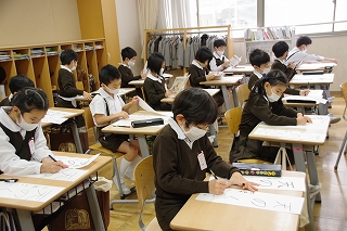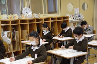 本校ではカトリック校にふさわしい、聖書や祈りの言葉を書き初めの課題に選んでいます。