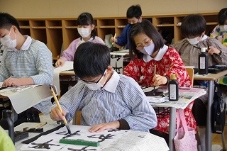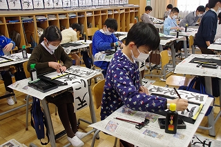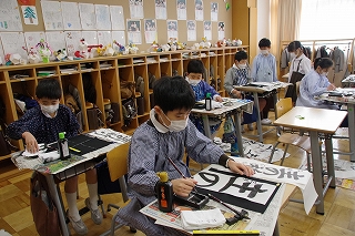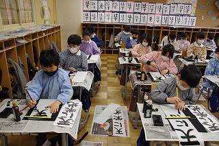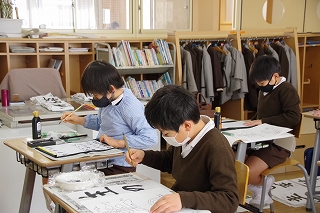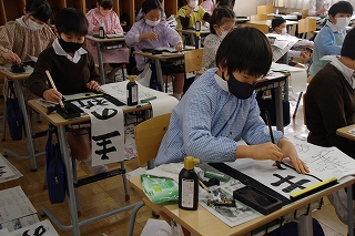 1月7日、後期後半の始業日に書き初め会を行いました。