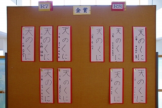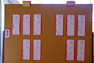各学年から一点ずつ選ばれた最優秀賞である学年賞は、1階中央階段横に掲示されています。