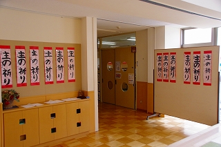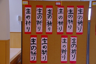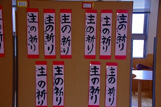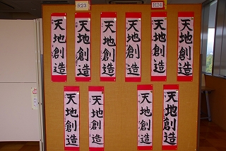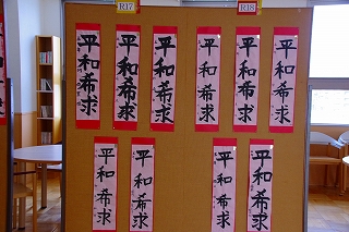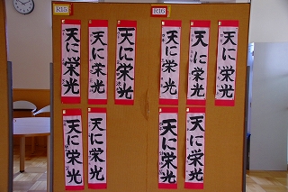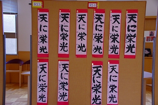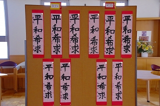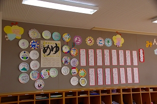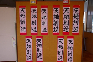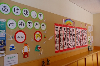 1月7日に行った書き初め会の全作品を「書き初め展」として校内に展示しています。