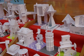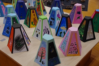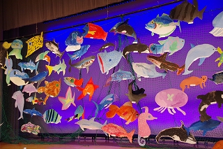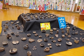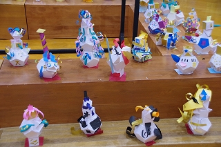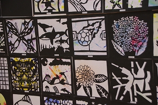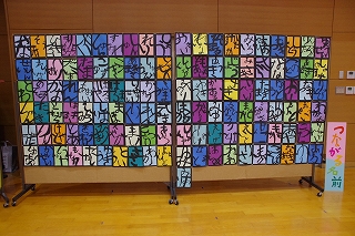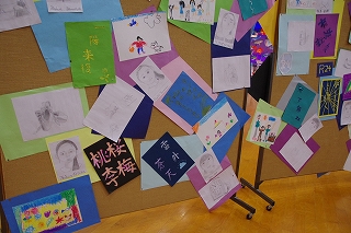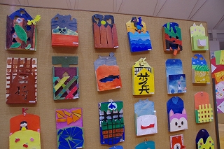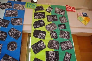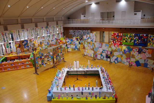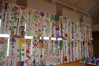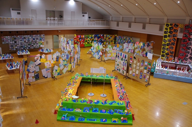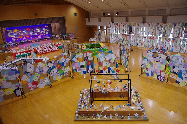 全校児童の作品が美しく飾られ、講堂がすてきな美術館になりました。