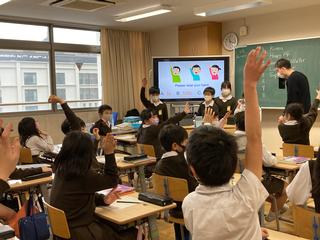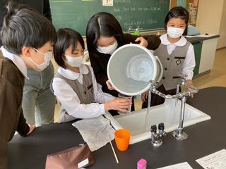 The 4th graders have studied about water in science, social studies and English. We tried measuring how much water we use to brush our teeth. It was very interesting to have English lessons in the science room. We measured and calculated how much water we use every day and realized that we should save our water.