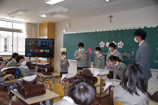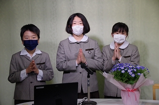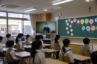 始業式はコロナウイルス感染予防の観点から今年度もテレビ放送で行いました。祈りから始まりました。