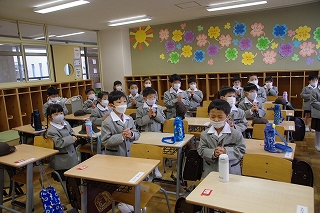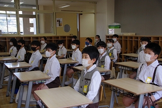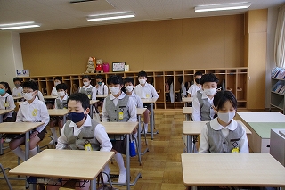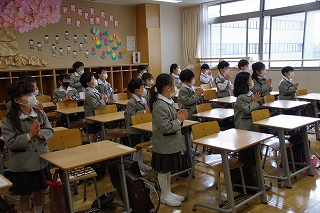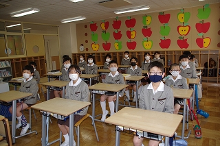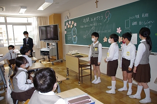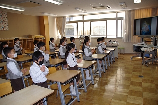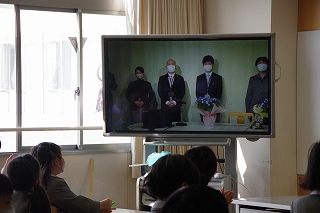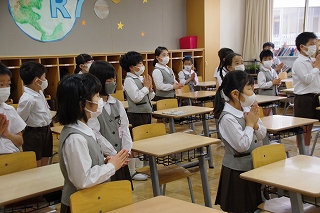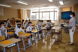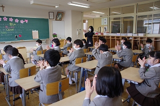 新しい先生、新しい友達の紹介を受け、それぞれの教室から歓迎の拍手を送りました。