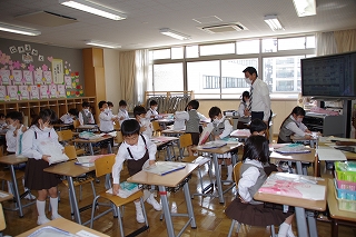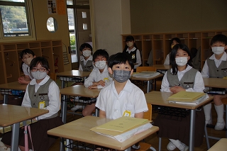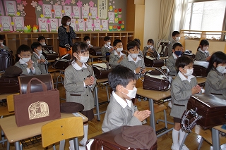 1年生はもらったプリントのしまい方を習うなど、小学校生活の第一歩をふみだしました。
