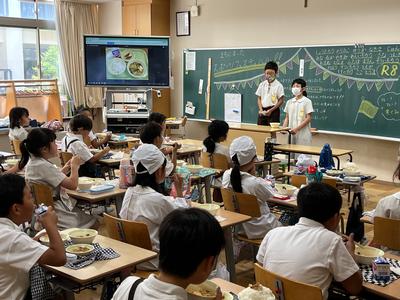スポフェス直後の給食中に、突然5年17組の子どもたちが4年16組のクラスにやってきました。