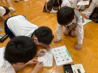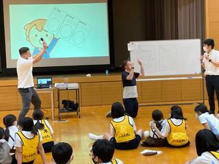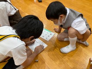 Then the 1st & 6th graders greeted each other. The 6th graders wrote their partners’ names in English and drew their feelings on the worksheets for them.