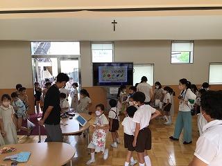 お客さんとなるのは、校内の先生方であり、本物のお金を使って売り買いをします。各クラスごとに「どうすればお客さんが野菜を買いたくなるか」について、意見を出し合って様々な準備をして、開店の日を迎えました。看板・チラシ・ポスター・iPadを駆使して作ったコマーシャル動画・衣装・飾り付け・おまけの折り紙など、たくさんの工夫がされてます。