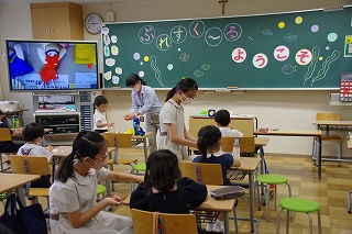 今回は,3年ぶりに児童も参加して実施することができました。合唱クラブの児童の演奏は,聞く人の心が洗われるような,静かで豊かなひとときになったことと思います。また,自発的にお手伝いを申し出てくれた約70名の5・6年生児童の積極的に奉仕をする様子もご覧いただき,創立以来、本校が大切にしてきたことの一端を,児童の様子から感じ取っていただけたのではないかと思います。