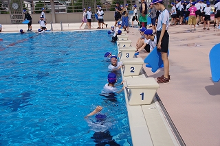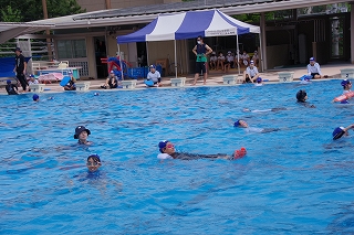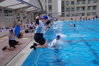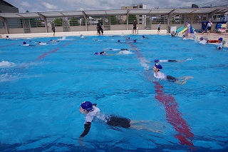 本校では5年生は平泳ぎを徹底して練習し、6年生ではクロールに挑戦します。