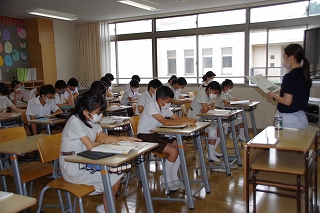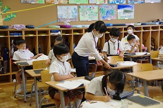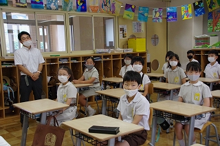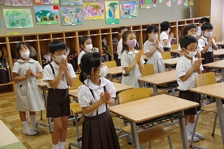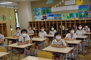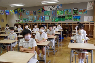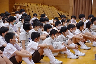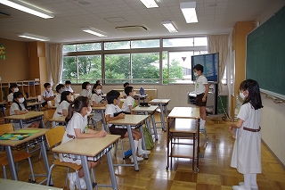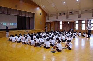 校長先生とともに、4月からの4か月の歩みをふり返りました。夏休みには目標を持ってチャレンジし、たくさんある時間を大切につかって有意義にすごしましょう、というお話がありました。