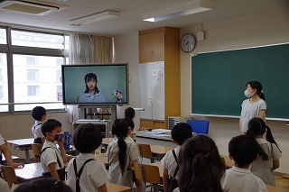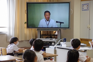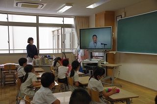 全校児童が校内テレビ放送を見ながら、前期前半をしめくくるひとときを持ちました。