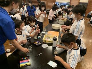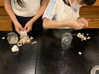 1日目の夜には,ホテルに戻る前に拾った貝殻を使ってジェルキャンドル作り体験です。