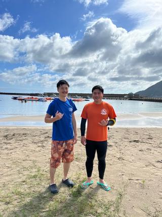 海に入る前に,使わせていただく浜の清掃活動「ビーチクリーン」を行いました。