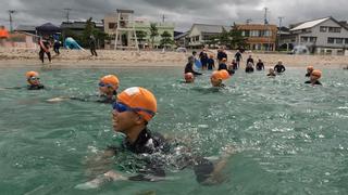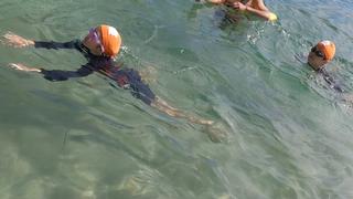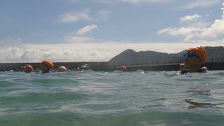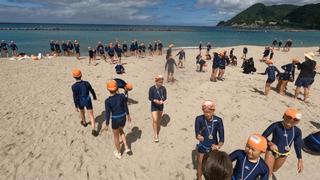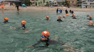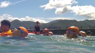この合宿は,かつて遠泳を経験した卒業生のお医者様と救急救命士という心強い先輩方に見守っていただきました。