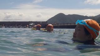 学校のプールとは違い,塩水の感覚に戸惑いもありましたが,水慣れを楽しみました。