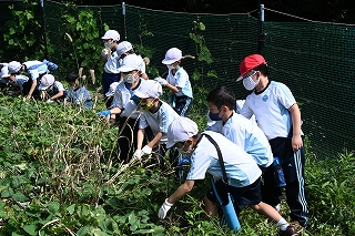 さて,今週は,1・2年生がペアで山の家学習を行いました。今回の活動は,「水の不思議を見つけ,水と仲良くなる」「パートナーとの交流でより仲良くなる」「サツマイモの苗の観察(1年)」「秋見つけ(2年)」の取り組みでした。自然の中で,土や草花,生き物に触れ,パートナーと協力しながら,さまざまな経験と生きる知恵を学んだことでしょう。