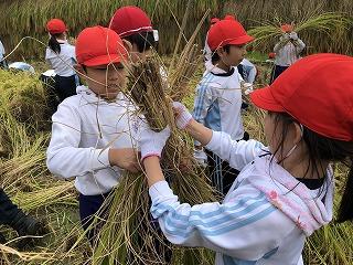日本の稲作はコンバインが全盛の時代ですが、手作業で稲を刈り、一束ずつもみを外していく工程を学ぶのも大事な体験だと考えています。