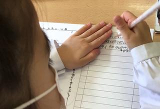 テレビ放送でロザリオのお祈りをするときは、「誰のために、何のためにお祈りするか考えましょう。」と投げかけられるのですが、いざお祈りが始まると『一生懸命』になってしまって、「あ~、何にも考えられなかった~」と少し困った様子の1年生。お祈りが終わった後、ゆっくり時間をとって、神様やマリア様と心の中で対話するのが日常です。(お祈りの内容は、お祈りカードに記録しています。)