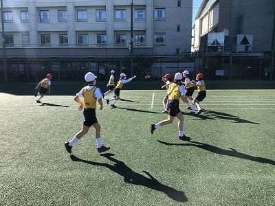 6年生の体育の授業ではフライングディスクを使ったアルティメットという競技を行っています。
