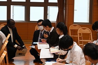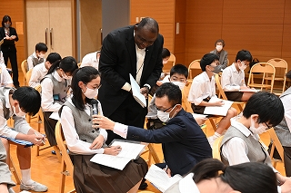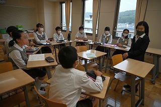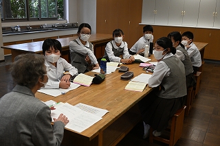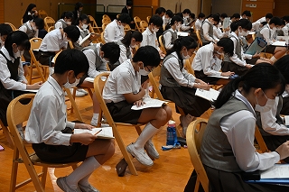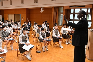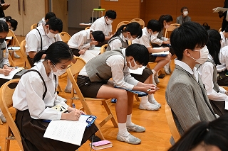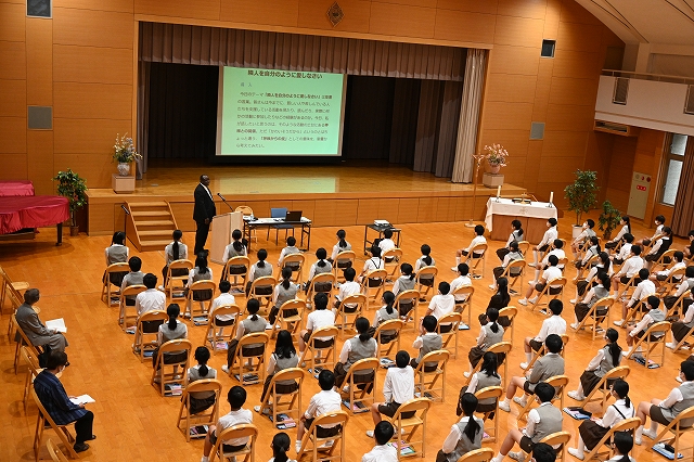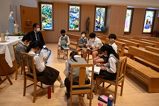 グループごとに行った「分かち合い」の時間には、今日のお話を聞いて、感じたことや考えたことを発表しました。ノートルダム教育修道女会のシスター方も分かち合いに加わってくださいました。素直に自分の心と向き合い、正直な言葉で語り合います。